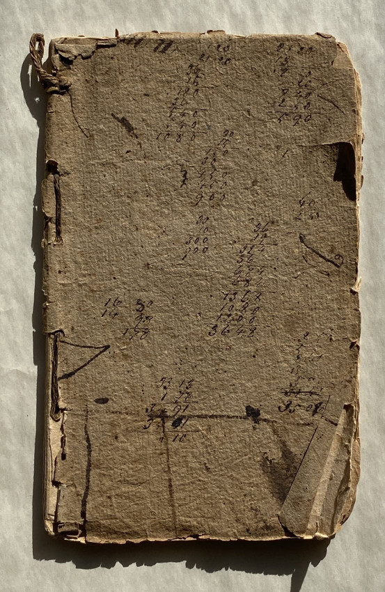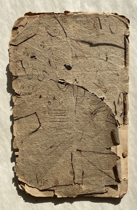 Vernacular binding: stab sewn into brown paper wrappers, with suspension loop to backstrip (backstrip damaged, tears to lower cover with a little loss).