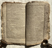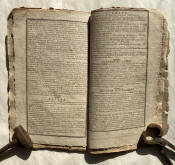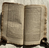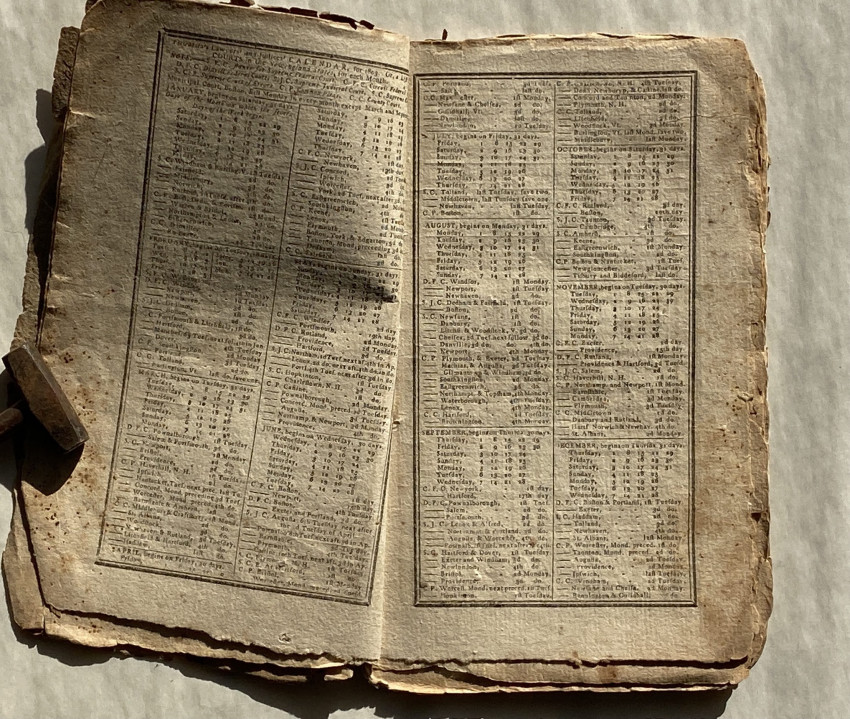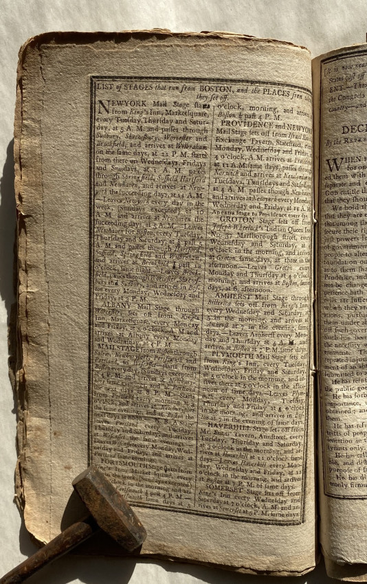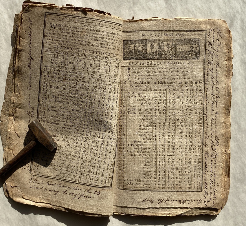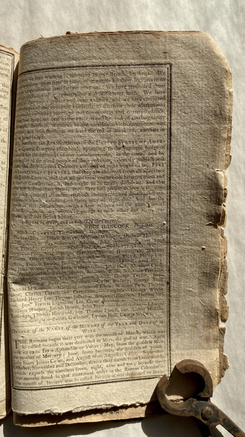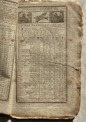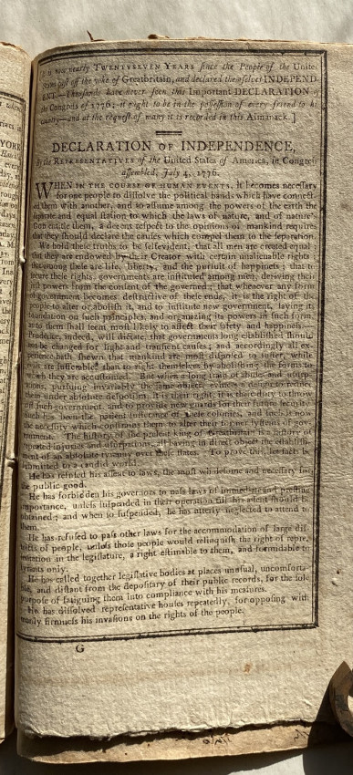 In addition to the expected ‘Ephemeris’ and pages of useful facts, this issue also includes three pages re-printing the ‘Declaration of Independence’ with a preamble ‘It is now nearly twentyseven years since the People of the United States cast of the yoke of Greatbritain, and declared themselves Independent. – Thousands have never seen this Important Declaration by the Congress of 1776; it ought to be in the possession of every friend to [t]hi[s] country – and at the request of many it is now recorded in this Almanack’.