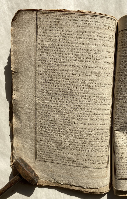 An appropriate connection: Isaiah Thomas, on 24 July 1776, was “the first person in Massachusetts to read the Declaration of Independence”, and here his son reprints the text in full.
