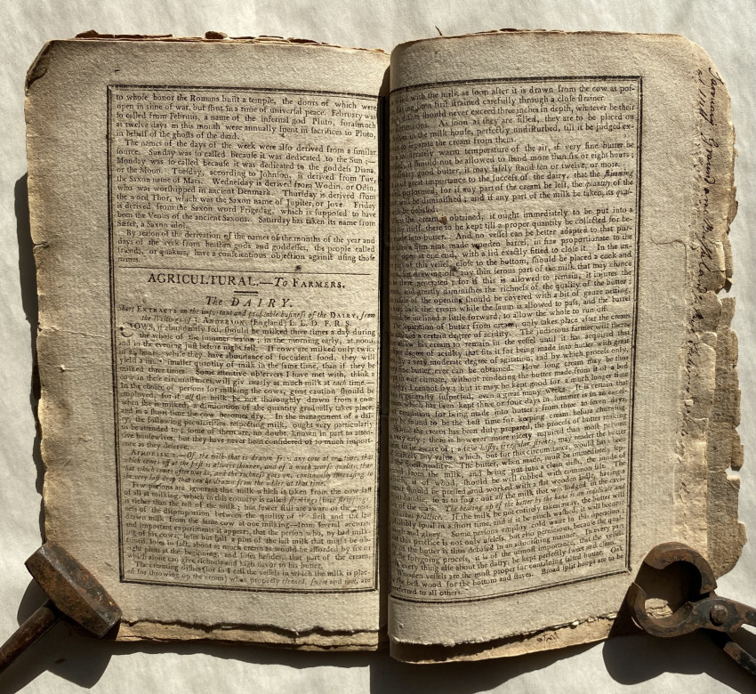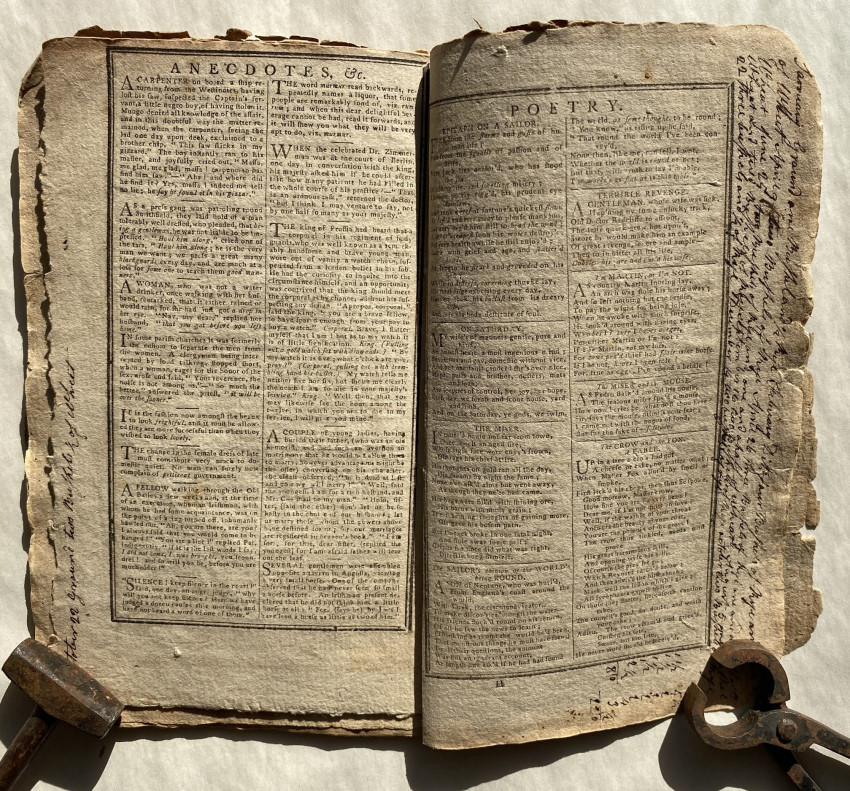 There are also extracts for farmers, notes for travellers, on the government of , ‘Anecdotes’ and ‘Poetry’ including ‘The Sailor’s Opinion of the World’s being Round’: “A Son of Neptune, who was hurl’d / From England's coast around the world / with Cook, the circumnavigator, / To make discov’ries ‘mongst the water…” [!]