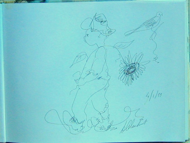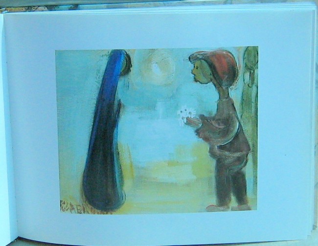The book posits the Nativity of Jesus here, metaphysically speaking, and the paintings are therefore a modern prayer of faith. The book's first Nativity was Christmas 1998, the year of publication, the ink drawing dated the Monday after the Epiphany.