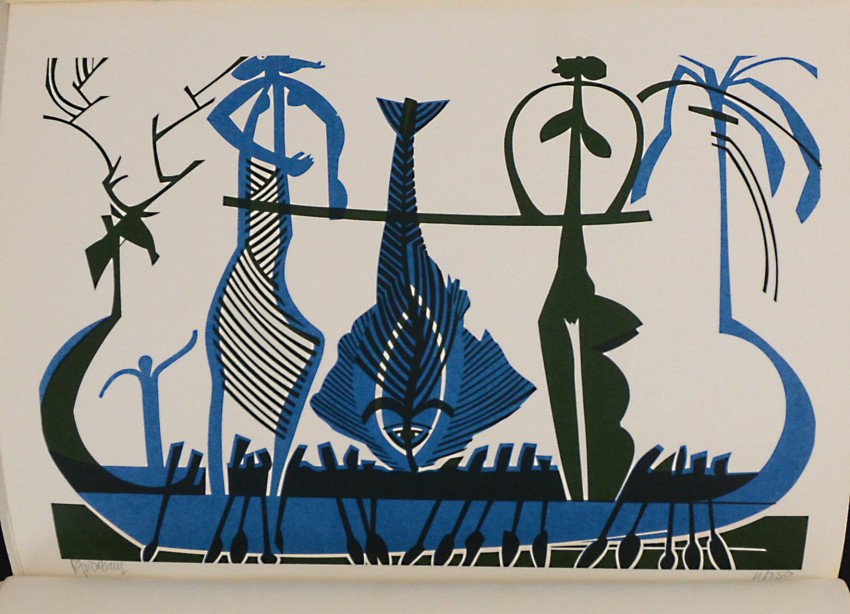15. Vol. 3, No. 16. Fook Island issue. Missing brown envelope cover. But containing signed graphic (179/350) by Norman Catherine and poster by Walter Battiss. Additionally signed by Catherine on the page opposite to his graphic.