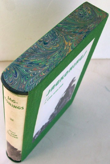 This copy is housed in a custom built slip case made by master craftsman Peter Carstens with a pictorial inset on the side, green cloth, marbled paper and leather trim. The dust jacket is protected with a transparent sleeve.