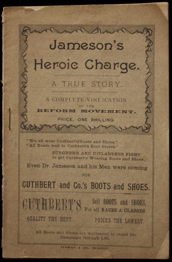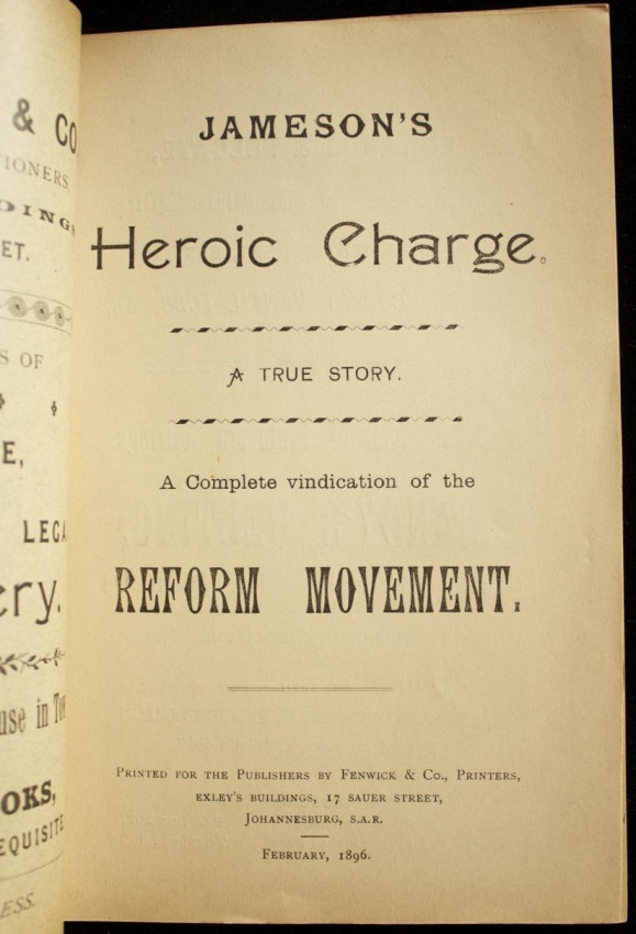 This booklet was published one month after Dr. Leander Starr Jameson's infamous raid into the Transvaal Republic and is a very rare example of early Johannesburg printing.
