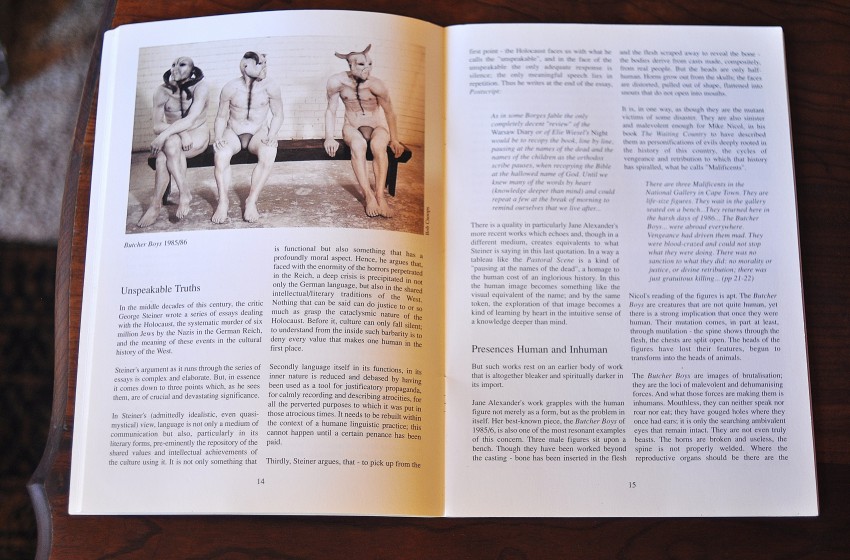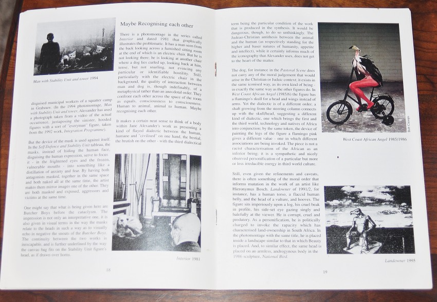 2. Jane Alexander : Sculpture and Photomontage with​ text by Ivor Powell. Published by Standard Bank National Arts Festival, 1995. 36 pages, 24cm, colour and black and white illustrations.