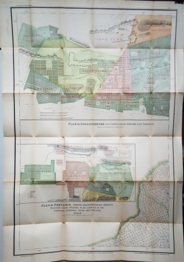 Plan of Johannesburg and surrounding Suburbs and Townships (reduced form Pritchard's Commercial Map of Johannesburg and Plan of Pretoria suburbs and surrounding grounds reduced from the original plan compiled in the Surveyors General's Office Pretoria S.A.R.