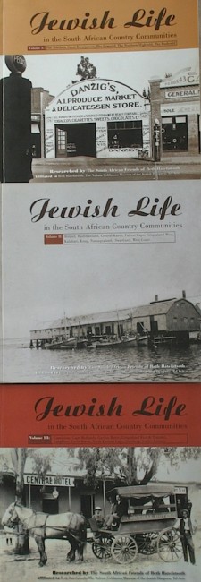 Softcover, illustrated, maps, portraits, 215, 528, 500 pp. Contents: Volume 1: The northern Great Escarpment, the Lowveld, the northern Highveld, the Bushveld; Volume 2: Boland, Bushmanland, Central Karoo, Fairest Cape, Griqualand West, Kalahari, Koup, Namaqualand, Swartland, West Coast; Volume 3: Camdeboo, Cape Midlands, Garden Route, Griqualand East and Transkei, Langkloof, Little Karoo, North Eastern Cape, Overberg, Settler Country. Includes bibliographical references and index. "The first two volumes, part of the unique on-going research project of South African Friends of Beth Hatefutsoth (or the Museum of the Jewish Diaspora), have enjoyed great success among readers, both in South Africa and abroad. Volume One focused on the northern and eastern Transvaal areas (mainly comprising today's Limpopo and Mpumalanga provinces). Volume Two focused on the Western Cape. The final instalments will cover the Free State and KwaZulu-Natal, and the southern Gauteng area, including the various towns on the East and West Rand. The third volume chronicles the history of the once strong and now largely vanished Jewish presence in the smaller towns and rural districts of South Africa, has now been published. The book starts with the earliest settlement of Jews in South Africa, before and including the 1820 Settlers. The areas covered in the new volume include the Garden Route, Little Karoo, the Cape-Midlands, Overberg and Settler country. The research covers almost 1500 small towns and villages in South Africa where Jews lived. No village, hamlet or railway siding has been too small; so long as there has been a Jewish presence there, every location has found its way into the record. In addition to recording the story of the various Jewish communities, it also recounts the history of the places in which they lived. The book also includes many colorful anecdotes of life in the country towns and villages, as well as numerous hitherto unpublished photographs". Inscription on flep of Volume 1, a fine set.