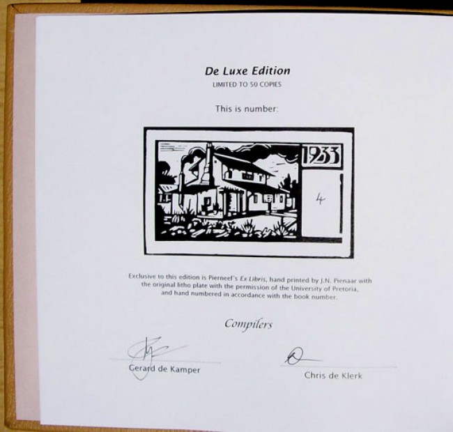 Exclusive to this edition is Pierneef's "Ex Libris" hand printed from the original litho plate and numbered 4/50. See images.