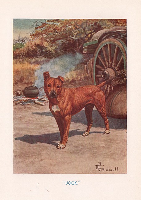 First edition. 475 pages, colour frontispiece, plates and illustrations in the margins, dark green cloth with the gilt titling and gilt illustration of Jock on the upper cover, slight wear on the spine.