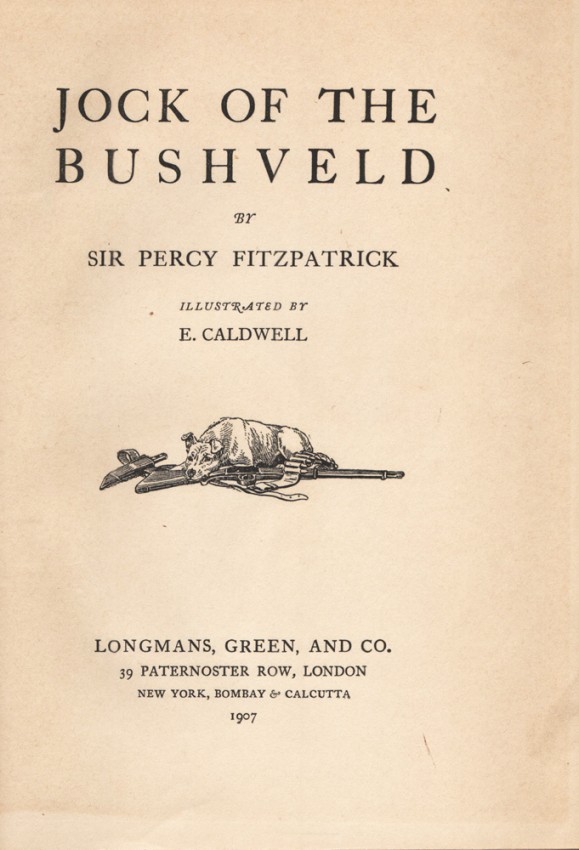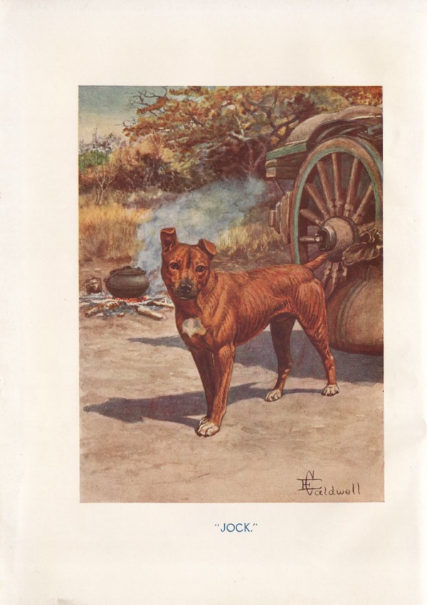 First edition, first impression: 475 pages, colour frontispiece, plates and illustrations in the margins, dark green cloth with the gilt titling and gilt illustration of Jock on the upper cover - the cloth is fraying at the top and bottom of the spine and at the corners, insect scarring and a stain on the back cover, both hinges weak, with an inscription of a previous owner on the front free endpaper, 'To A. Aiken, from W.E., 1907', small stain at the bottom corner of half the pages, otherwise contents bright.