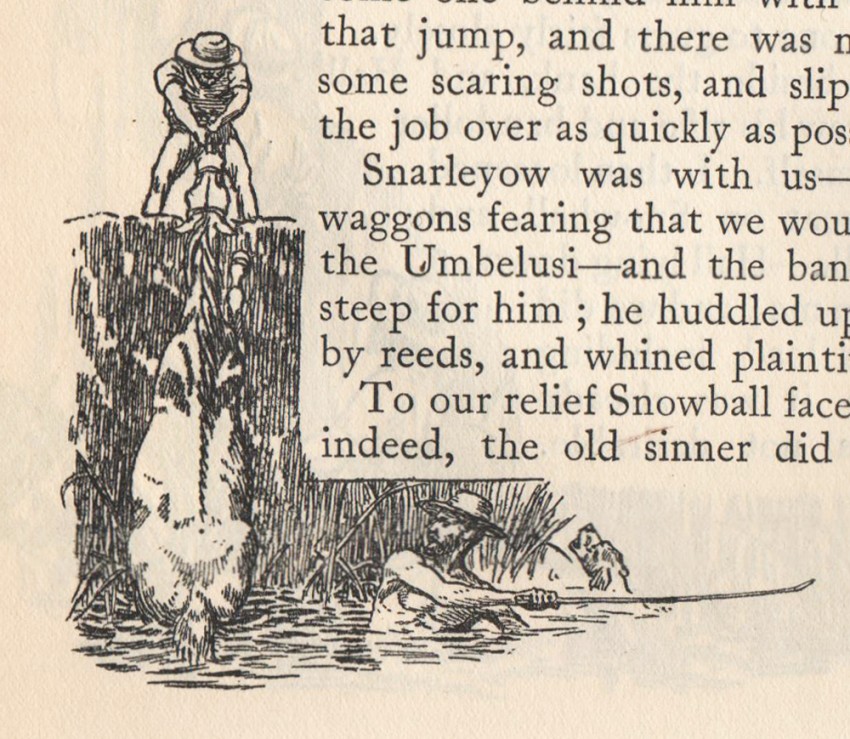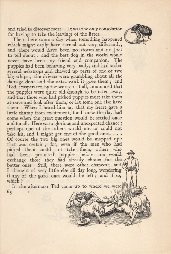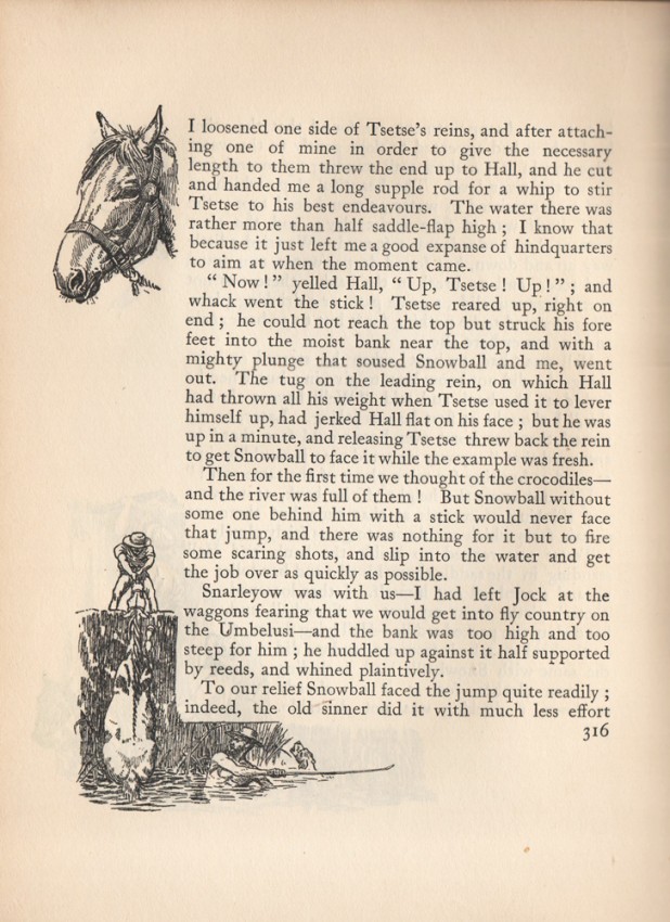 With the drawings of a dung beetle pushing his load with his front legs rather than his back legs on pages 65, 337 and 457 and snowball the horse being dragged out of the river on page 316. These drawings were changed in later impressions.