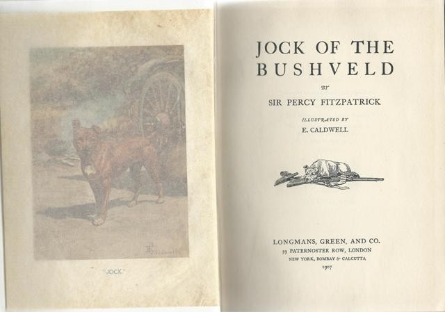 xv, 474 pages, [18] leaves of plates: illustrations, colour portrait of Jock as frontispiece. Pictorial cloth with gilding. Lower corners slightly bumped. Name and "from R.M.C." in ink on front endpaper. Otherwise a tightly bound and very clean copy of this South African classic.