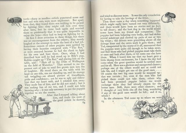 True first edition, with margin illustration of a confused dung beetle rolling its prize away using its front legs (page 65), contrary to the habit of its species! "Perhaps one of the best dog stories ever written. The volume has much interest for the 'Little People' for which it was written, and is equally appreciated by children of older growth. The fascinating hunting adventures and escapades are accompanied by graphic sketches in the margins of every page..." Mendelssohn, SOUTH AFRICAN BIBLIOGRAPHY volume 1, page 550.