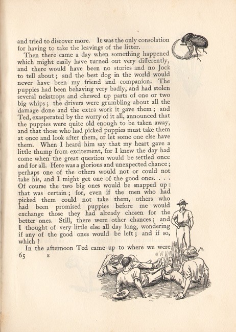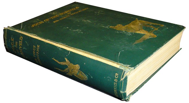 First edition: xi, 475 page, colour frontispiece, 22 black and white plates with numerous illustrations in the margins and several sketch maps. Inscription of previous owner in ink on free front free endpaper. Original dark green cloth with gilt titling and gilt vignette of Jock on the upper cover and gilt titling and vignette of a buck’s head on the spine. The cloth is lightly insect scarred and the upper joint is split but the binding is holding firmly, contents bright.