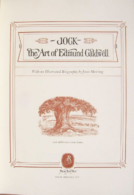 Original quarter red leather binding with gilt titling on the spine and oatmeal coloured textured cloth boards with a decorative device with the initials "EC" (Edmund Caldwell) stamped in gilt on the upper board. All edges coloured red. 260 pages, 8 full page colour plates, full page washes, the "Jock of the Bushveld" illustrations and drawings in black and white.