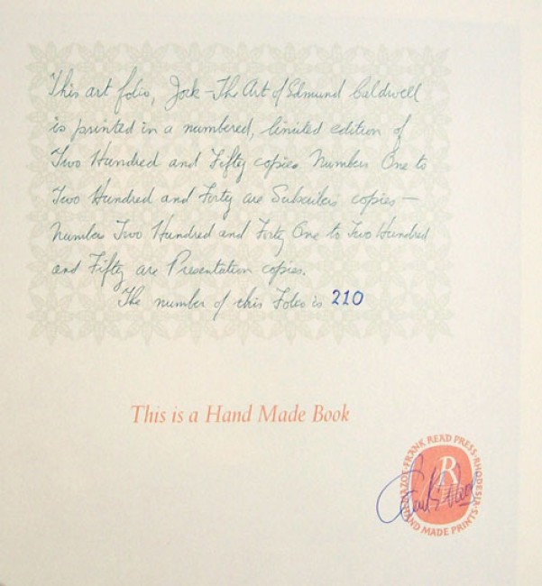 A fine hand made book with a description of the processes used to produce it on the last page.