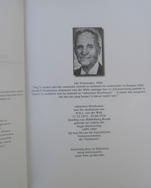 Hierdie boek handel oor Hendrik Stephanus Johannes van der Walt, alias Johannes Strydsman, se oorlogservarings as verkenner onder die bevel van kommandant P.H. Kritzinger, tydens die kommando se inval in die Kaapkolonie. Die gebeurlikhede rondom die kommando word breedvoerig beskryf vanaf Januarie 1901 tot en met Junie 1901. Insae word gelewer oor die Boerekommando se legendariese vegvernuf gepaardgaande met hul uiterste beweeglikheid en natuurlike aanvoeling vir guerilla-oorlogvoering.