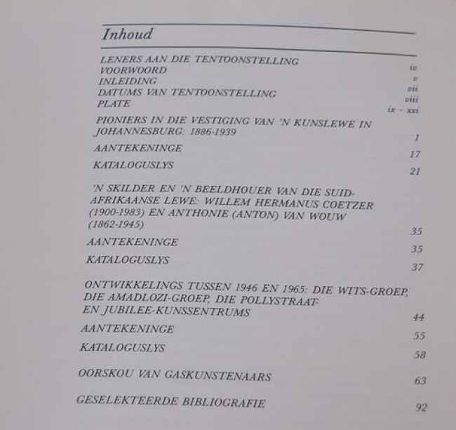 96 pages, A4 size, numerous colour and b/w plates. Foreword by Christopher Till. Extremely comprehensive insight into all the great Johannesburg artists. Includes most of the masters of SA Art. Van Vouw, Skotnes, Pierneef, Sumner, Wenning, Sash, Cattaneo, Kumalo, Sekoto, Sithole and many, many more. Text in Afrikaans.