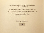 Publisher's de luxe edition limited to 125 copies of which this is #74.