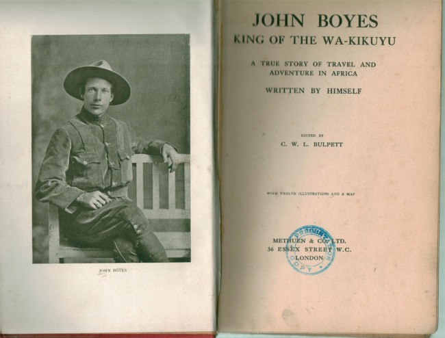 [Boyes (J.)] Bulpett (C.W.L.). John Boyes King of the Wa-Kikuyu. A True Story of Travel and Adventure in Africa. Written by himself. Edited by C.W.L. Bulpet. With twelve illustrations and a Map. Methuen & Co. Ltd, London, 1911.