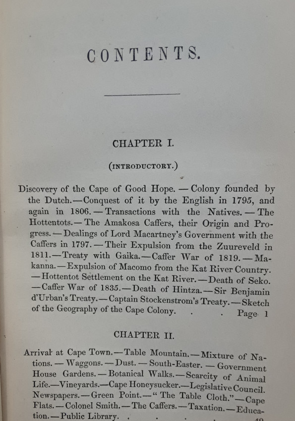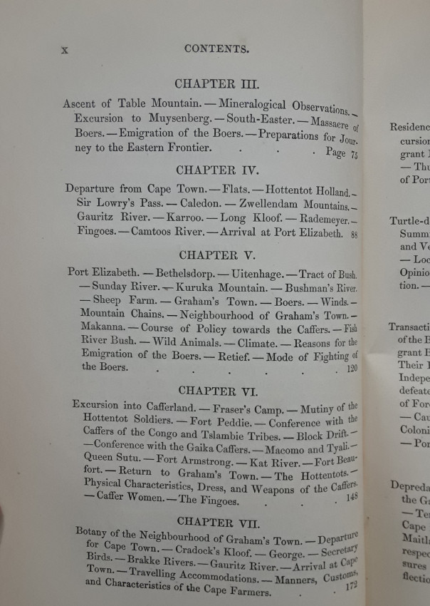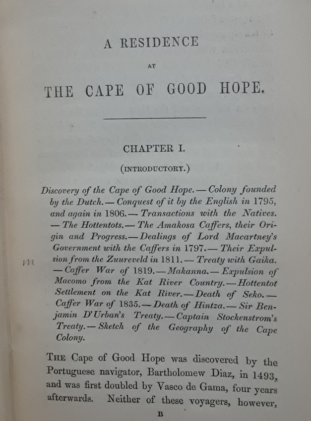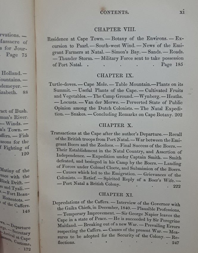 Author provides a detailed account of the people, places and botany of the Cape Colony at the time.