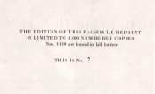 Limitation page reads: The edition of this facsimile reprint is limited to 1 000 numbered copies. Nos. 1 -100 are bound in full leather. This is number 7.