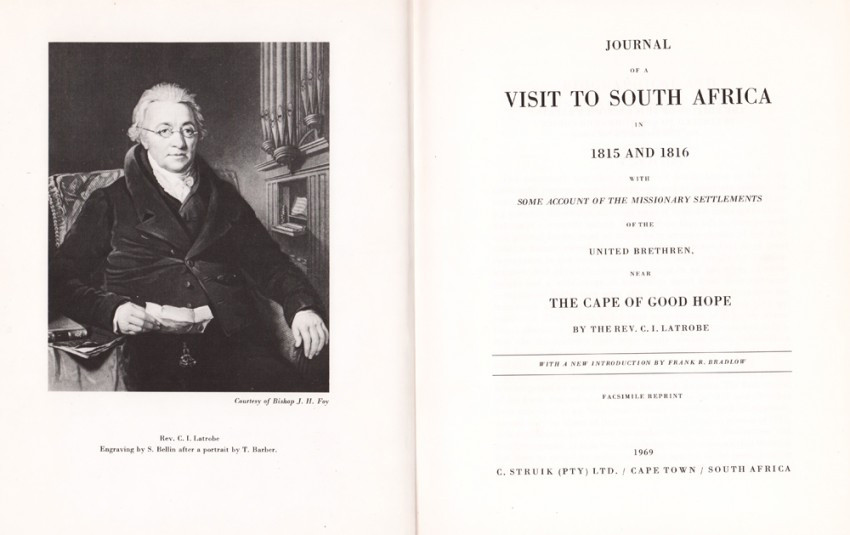 South Africa in Print comments about Latrobe that 'He has left an important volume of travels with illustrations second only to those of Burchell'. Colvin in his introduction to Mendelssohn's 'Bibliography' describes the Journals as 'written with much sweet piety and simplicity of spirit, yet (he) shows shrewdness of observation and a fine common sense.'