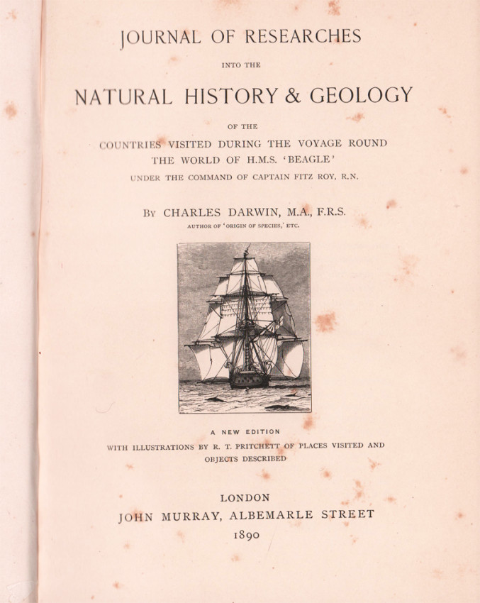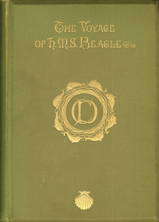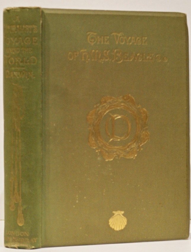 New edition: 551 pages, frontispiece of the Beagle, title page vignette, 9 black and white plates, numerous black and white illustrations, folding coloured map at the back, foxing throughout and on the page edges – fore edge and bottom edge uncut, top edge gilt, original green cloth over bevelled boards, with gilt vignette and title on the upper cover, titled gilt on the spine, a good copy.