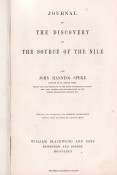 Maitland (Alexander) Speke and the Discovery of the Nile, page 189: 'The Journal appeared before the public on 16th December 1863. The title, considered in certain quarters as presumptuous, was, at best, an improvement on the unwieldy, if more comprehensive, original, Speke's Discovery of the Source of the Nile and Life in Africa with Captain Grant. To cater for the Christmas market, the first impression of 4000 copies was increased to 7500.' This book continued to fuel the dispute between Speke and Burton which was to have culminated in the debate which was arranged to take place between the two men on 16th September 1864 but which never took place owing to Speke's accidental death the day before.
