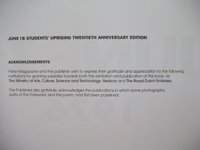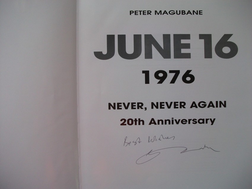 Inscribed by Peter Magubane on the title-page. This is the fourth impression of the 1996 edition (not the more common the 25th anniversary edition published in 2001. The imprint notes "Peter Magubane and the publisher" but no other publisher is named.