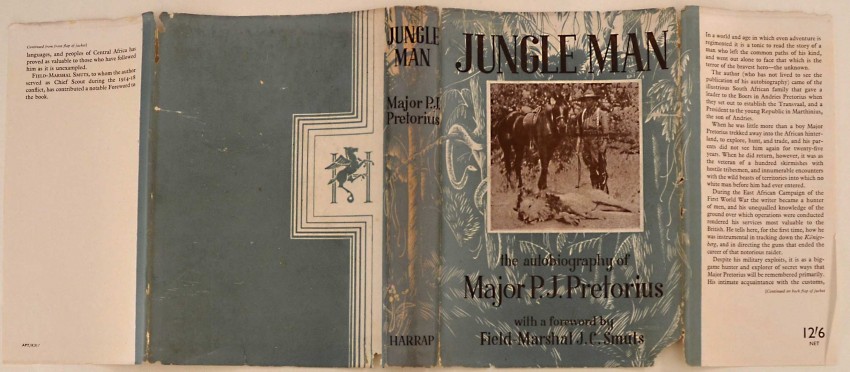 The now scarce first edition of this title. The adventurous life of Major Pretorius born in the Transvaal, South Africa and spending his life hunting the wild animals of Africa. During the East African Campaign in World War I, he served as chief of scouts for Field Marshal Smut's forces. Numerous black and white photographs. Introduction by Field-Marshall J.C. Smuts. Nice mapped endpapers of Southern Africa. 232pp. in the original red cloth with dustwrapper.