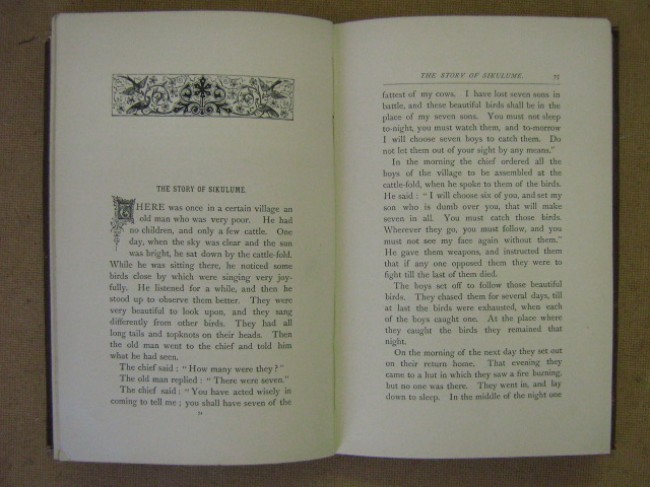 Chapter titles include The Stories of Tangalimlibo, Simbukumbukwana, Sikulume, Demane and Demazana, the Runaway Children, the Girl and the Mbulu, the Long Snake, the Hare, the Lion and Little Jackal, etc...