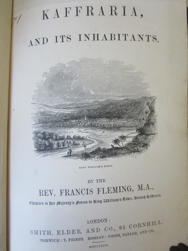 Smith, Elder & Co. 1853 1st edition, small 8vo (20x14 cms), 8+144+12 pages, folding map, 11 engravings: based on 3 years residence, a study of British Kaffraria, its history, general character, animals, people and tribes.