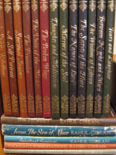 In order of first publication, the Heinemann books are The Prophet 1923/1964, Jesus, the Son of Man 1928/1973, Nymphs of the Valley 1948/1972, Thoughts and Meditations 1961/1973 and Spiritual Sayings 1963/1972.