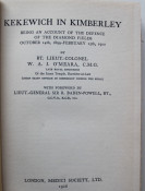 The author writes, 'As much ... as one would wish, in dealing with Kekewich's gallant and remarkable defence of the Diamond Fields, to remain silent on the subject of the many things done by Rhodes which brought him into collision with the military commander of the besieged town, and gave rise to the friction alluded to' ... that he has decided, ‘with considerable reluctance’, to give a description of the events from Kekewich’s perspective which gave rise to this friction, and, in the author’s opinion, placed Kekewich unfairly in an unfavourable light. The author felt that, as the chief intelligence officer under Kekewich, he was ideally placed to describe events behind the scenes, of which he had first hand knowledge, which led to this friction. (From the introduction).