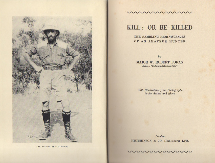 Foran relates his adventures the length and breadth of Kenya with chapters on hunting leopard and lion, and encounters with elephant, buffalo, rhinoceros and hippopotamus. Besides his own experiences, he also provides anecdotes from various other hunters including Stigand, the Buffalo Jones safari and the Roosevelt expedition which he covered for the Associated Press. Original dark green cloth with bright gilt spine titles. Light speckling to the edges of the cloth. Original endpapers. Well illustrated with photos.