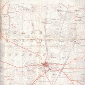 570 x 960 mm, roads marked in red, individual farms are named, printed on linen and folds in yellow limp cloth covers.