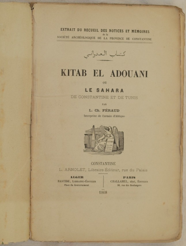 Scarce work of 1868 about Algeria written by the french Laurent Charles Feraud (1829-1888).