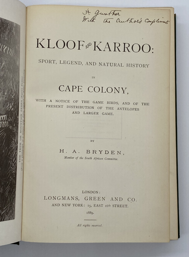 Binding very slightly shaken and very slight rubbing to the corners of the boards. Green cloth covered boards with gilt titles to spine and top board. Top board also with gilt Klipspringer image as found mirrored in one of the plates contained in this volume.