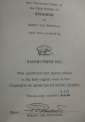 An account of the author's time in East Africa, with details of hunting expeditions in Tanzania and Kenya during the 1950's , 1960's and 1970's. Well Illustrated with black and white photographs.