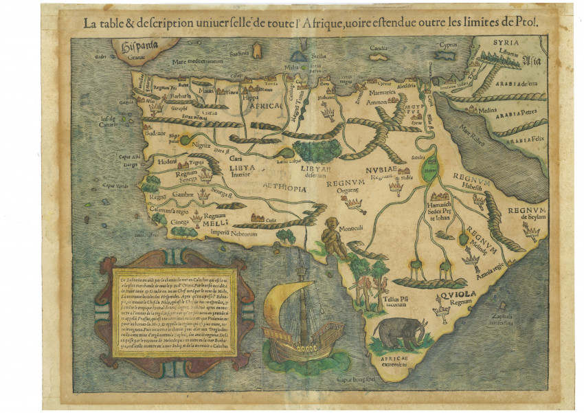 This is the 1556 French edition of the first map of the entire continent Africa that was and is still readily available.