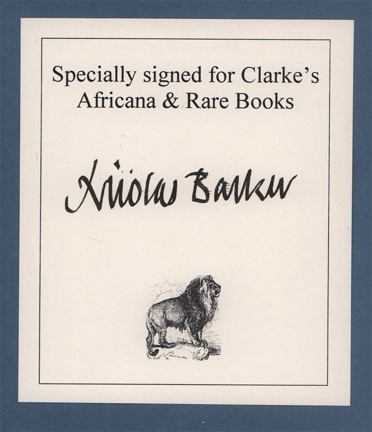 Book plate on the front paste-down end paper reads: Specially signed for Clarkes Africana &Rare Books.