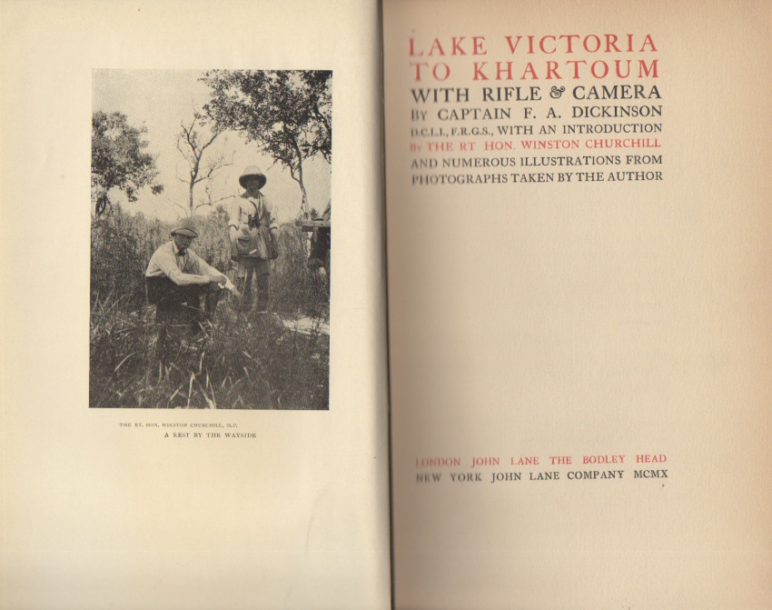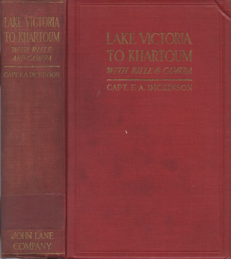 Dickinson provides details of where to hunt the major game of the Uganda southern Sudan region, from the highlands to the Sudd of the Nile. He served as Winston Churchill s escort from Lake Victoria to Gondokoro and includes two chapters on elephant hunting, with additional sport after rhino, antelopes, etc. Original red cloth with blind rules and bright gilt titles on upper board, gilt spine titles a little dulled but quite legible. Original endpapers, front inner hinge starting, rear inner hinge firm and tight. Well illustrated with photo plates. This copy from the private library of the Rittenhouse Club of Philadelphia, with their bookplate on the front pastedown, and a sympathetic cloth swatch covering the spine numbers.