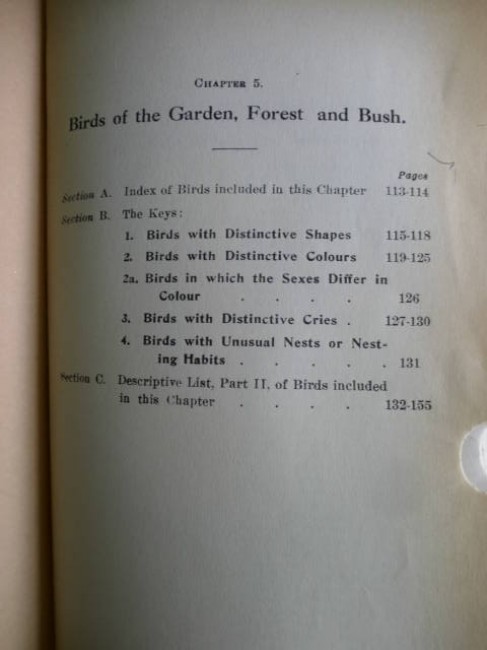 His presentation is unique - certainly for South African bird books. The sections are thumb-indexed - Introductory Chapters, Colour Plates, Veld and Mountain, Garden, Forest and Bush, Rivers and Vleis, Sea and Coast, and Bird Protection and Appendices.