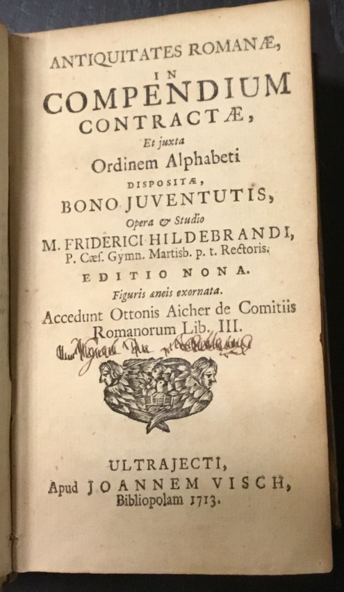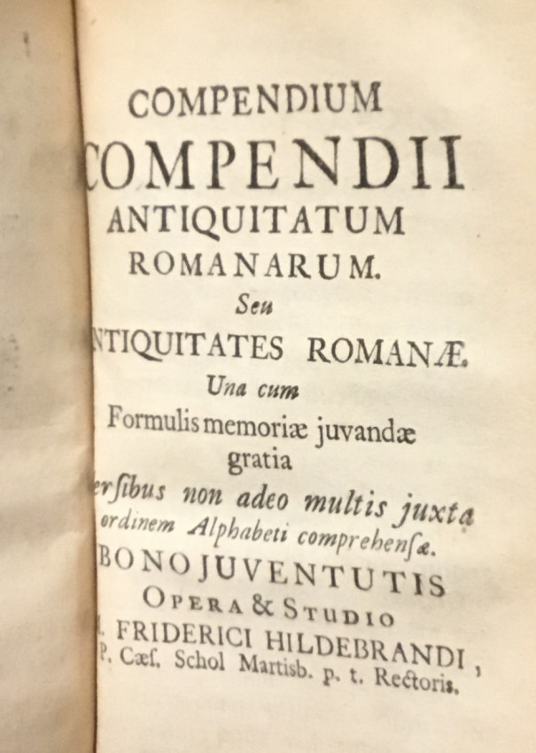 Hildebrand, Friedrich, and Otto Aicher. Antiquitates Romanae, in compendium contractae, et juxta ordinem alphabeti dispositae, bono juventutis. Ultrajecti: apud Joannem Visch, 1713