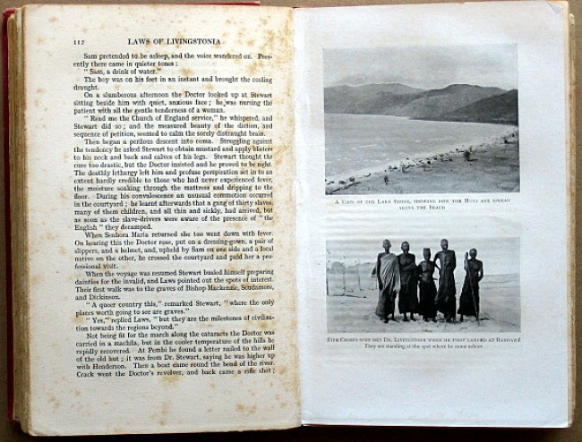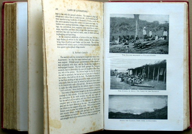 xii plus 386pp. Original red cloth hardcover. Gilt title to spine. Frontis portrait of Robert Laws, several B/W photo and line illustrations. Fold-out map of Livingstonia. Complete as called for.