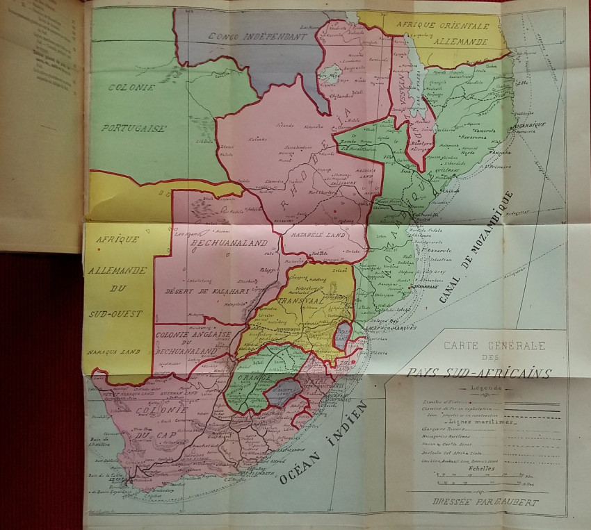 Half-sheepskeen binding with marbled cartonage boards; Collation complete - 346 pages + folding colour map; Text in French; Binding is tight and firm, a bit scuffed to the extremities. Text block/pages in very good condition, with some yellowing.