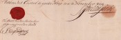 1 folio document handwritten on 1 side only with the VOC crest embossed at the top right hand side and the red VOC seal almost intact at the bottom of the document, signed by J De Grand Preez - Gouveneur in den Raad and Hendrik Swellengrebel. The document (from being folded in half) has the wax impression of the crest on Swellengrebel's signature, a very good copy.