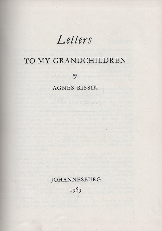 Copy No.321 of 350. Covers such diverse historical episodes as the exhumation of Napoleon's body & the siege of Kimberley, while imparting family information for Duncan, Alexander, Rissik, Altmann, & Leibbrandt families. The Rissik connection was Johann Rissik who was appointed by Louis Botha as the first Administrator of the Transvaal following Union in 1910. Interesting notes on the naming of Johannesburg. Regrettably this item does not include the separate booklet with family trees.