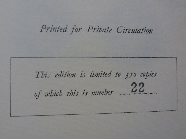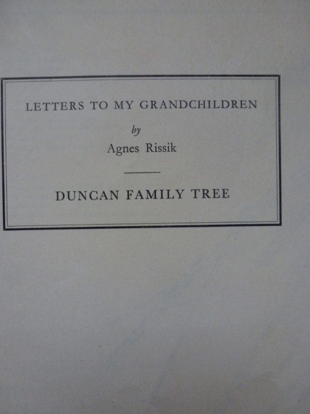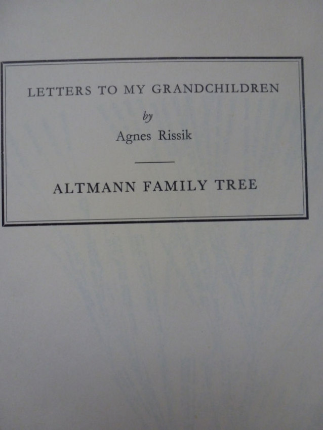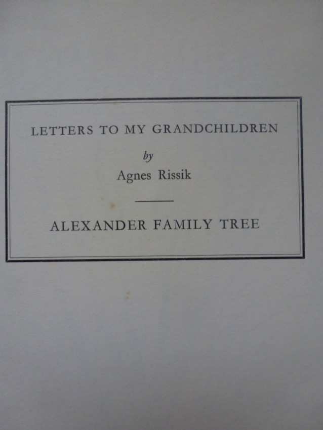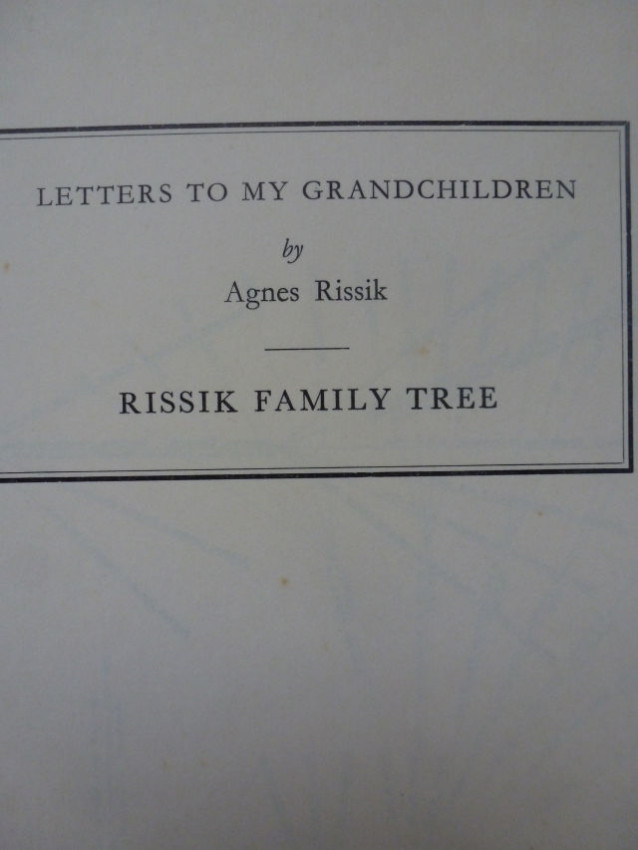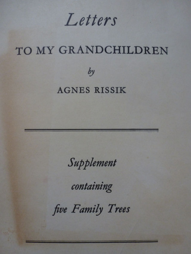 Included in the with the book which is encased in original slipcase, is the family trees of the five above mentioned families, these are in an original printed envelope. Also included is a 4 page document signed by Ulrich Rissik in March 1971 containing " Material supplementary and ancillary to "Letters to my Grandchildren" ...."